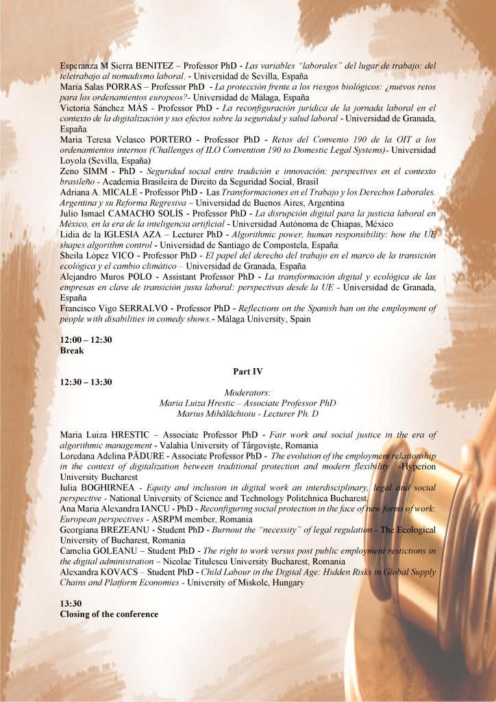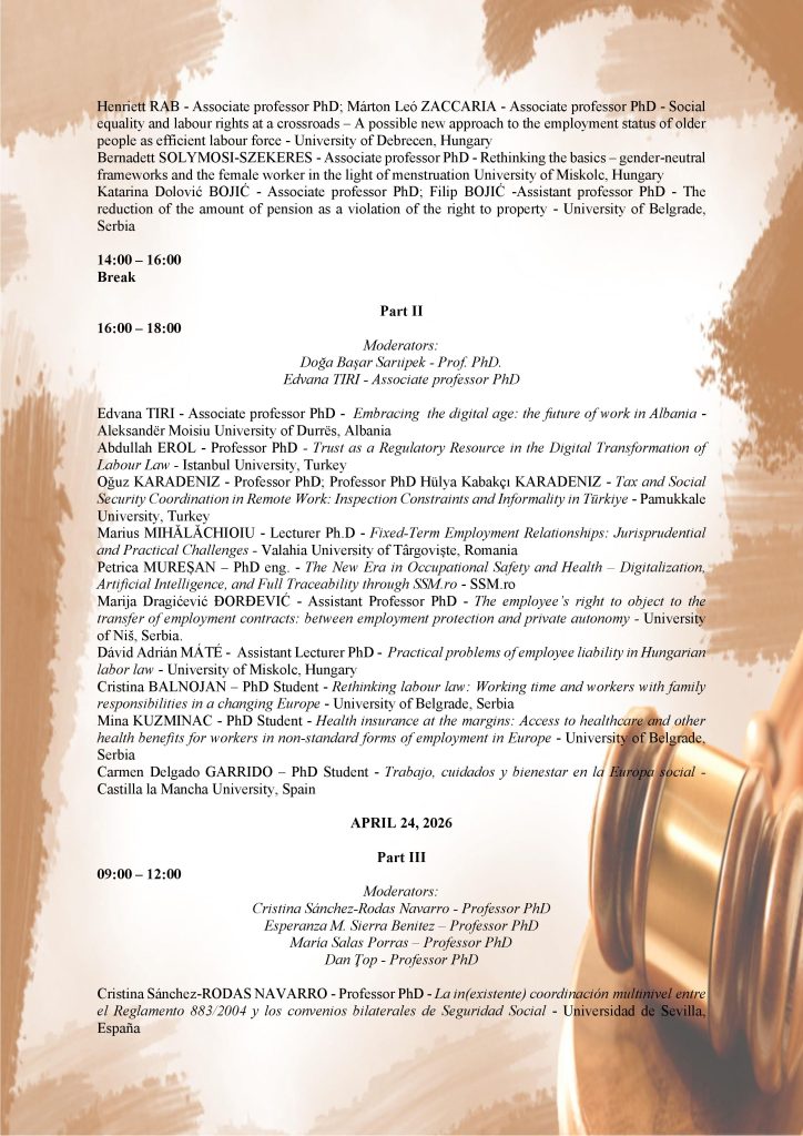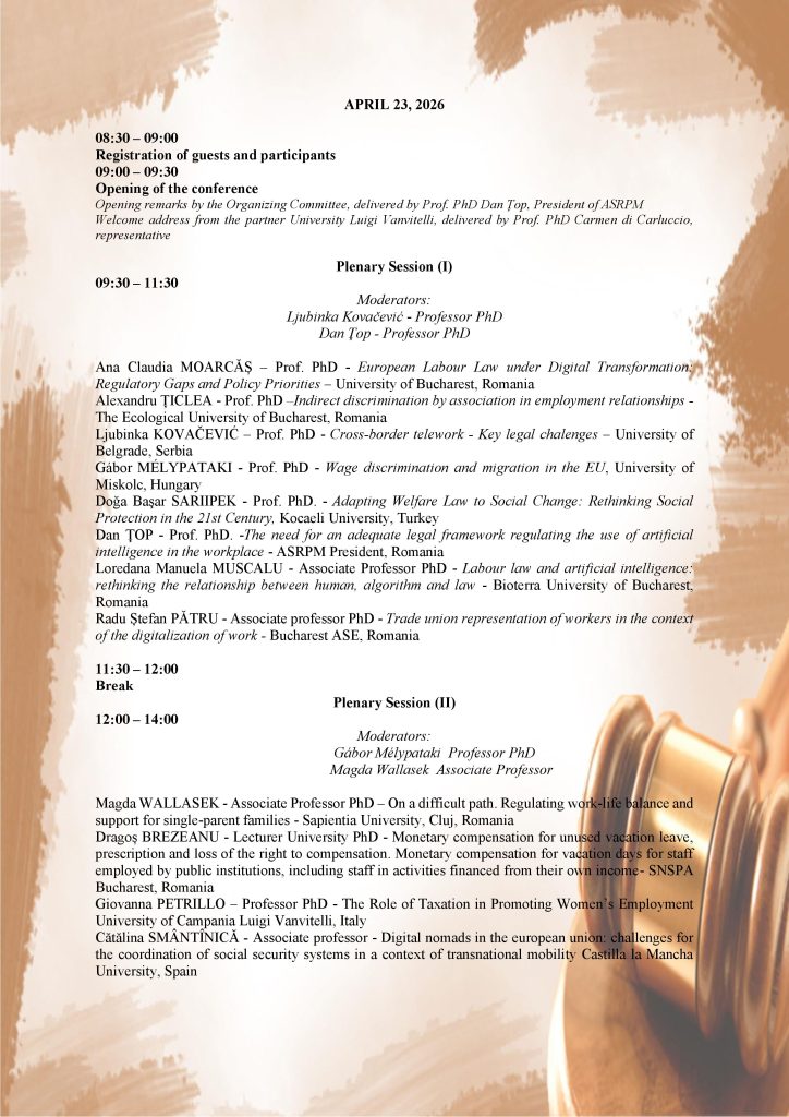 “LABOR LAW AND SOCIAL SECURITY BETWEEN TRADITION, INNOVATION AND SOCIAL JUSTICE” TÂRGOVIȘTE APRIL 23-24,2026