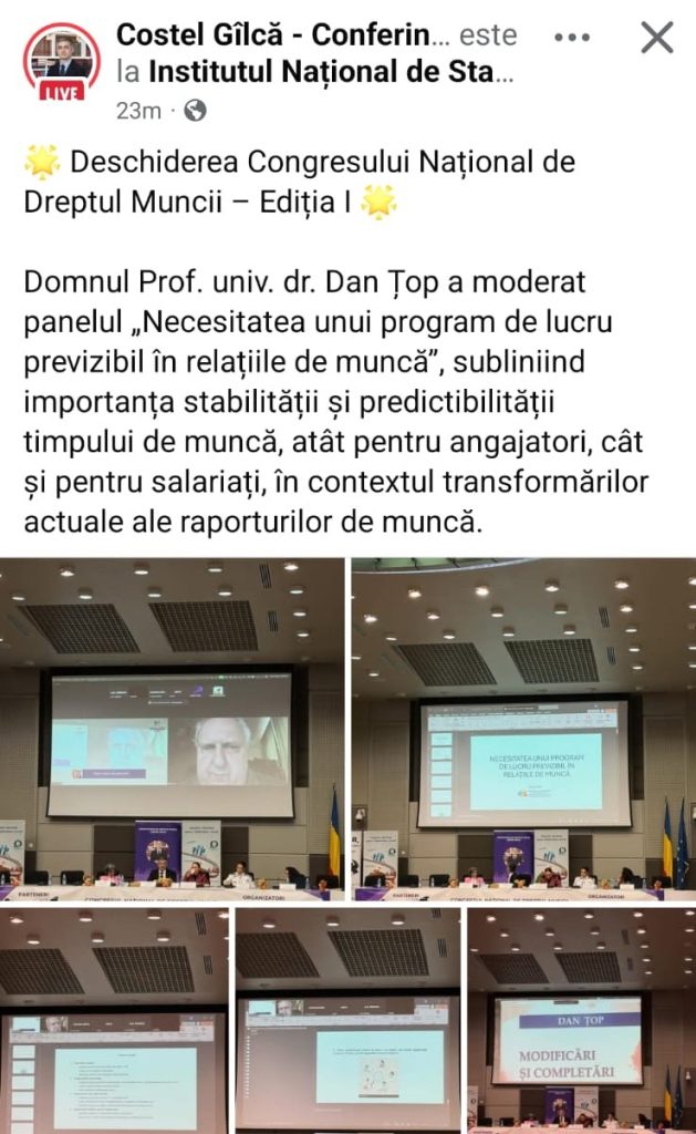 10:00-10:20 – Prof. univ. dr. h.c., av. Alexandru Țiclea, Universitatea Ecologică din București, cercetător științific asociat, Institutul de Cercetări Juridice „Acad. Andrei Rădulescu” al Academiei Române – Noutăți legislative și jurisprudențiale în dreptul muncii